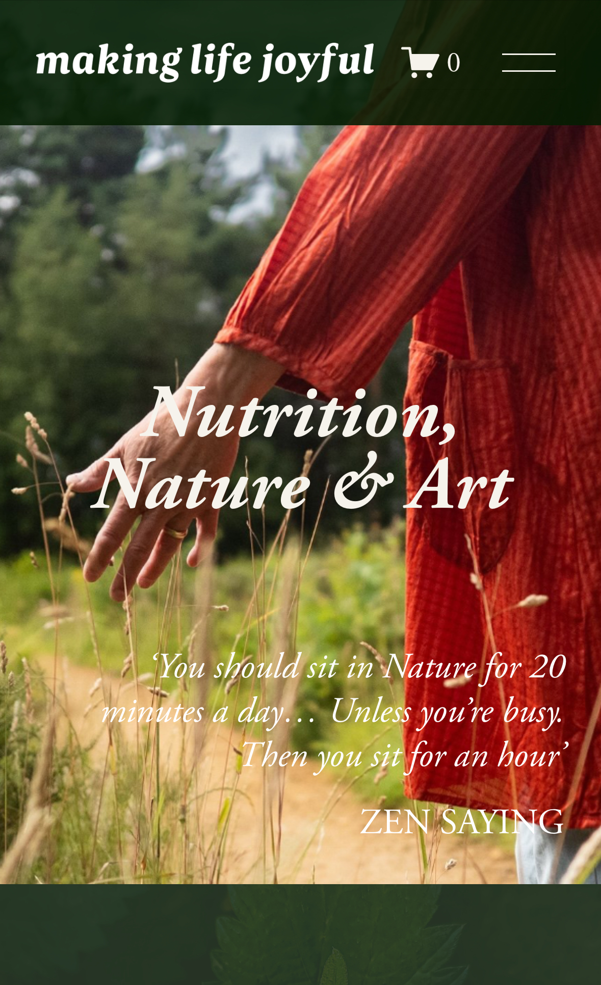 I am excited to announce the launch of Making Life Joyful, a platform designed to help you thrive and live a joyful life. Whether you’re looking to achieve optimal health, more energy, calm & vitality, or learn more about nutrition, nature and art, I’ve got you covered.
